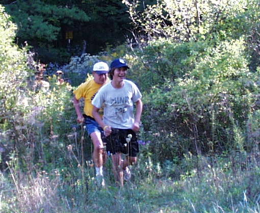 It was gratifying to see that so many people had grasped the Spirit of the Triennial, although certainly the postcard-perfect weather helped. Many had prerun their sections of trail, almost all were ready to rumble, and the action in the woods was fast and furious. Or in my case not so fast, but certainly furious. We have to thank the Finger Lakes Trail Conference (although they don't know it) and all the trail maintenance volunteers, especially Joe Dabes who is now in charge of detailed trail mapping with GPS for the whole FLT -- finally we have accurate mileage (n.b. that does not include lifting your feet over downed logs or "roots"—actually limbs of the ground-dwelling "Trail Monster" that defend the trail against fast running).