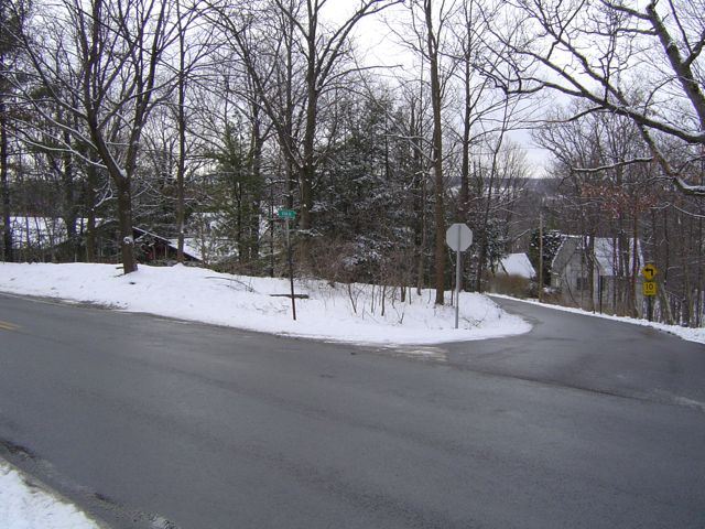 Looking SW down Devon Rd. across Hanshaw, approximately on the alignment, which was swinging sharp to the left (S)