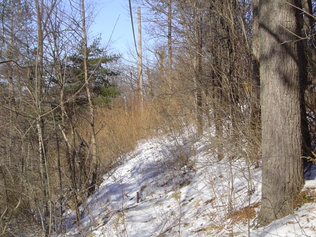 Grade very eroded and barely visible, on W face of the Knoll; note telephone lines on right-of-way